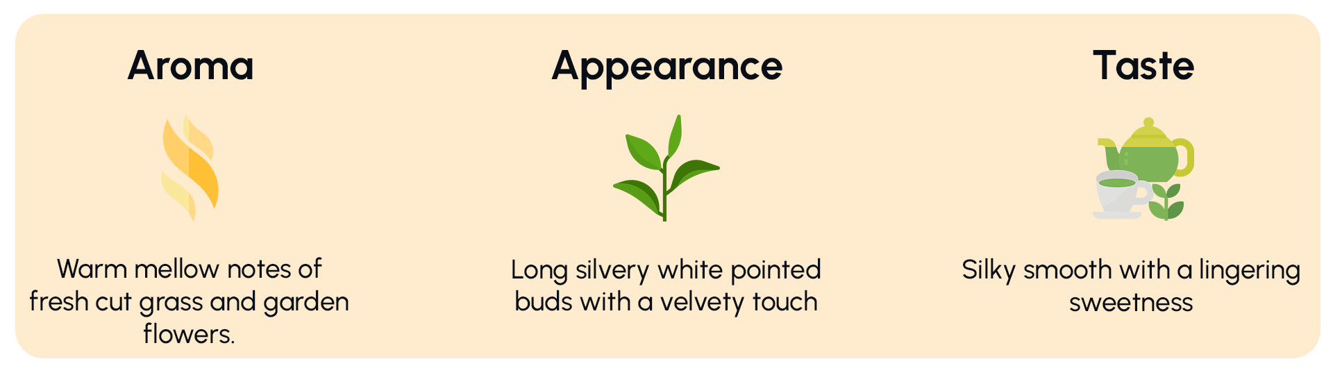 Light and flavorful with a pale creamish color, it gives rich aromatic layers of sweet, mild, and mellow taste to the tea, giving pleasure to the tea connoisseur.